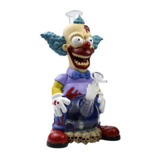 Send in the clown — if you dare. The 10.5-inch Nightmare Krusty 3-D Bong brings a terrifying twist to the classic cartoon jester, complete with haunting details and wicked color tones that make this piece an instant showstopper. Crafted from polyresin and glass, it blends art, attitude, and smooth performance in one unforgettable design.
