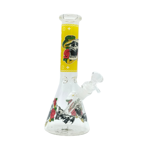 Featuring tattoo-inspired artwork of skulls, snakes, spiders, and roses across vibrant colored necks, each piece makes a statement that customers won’t forget. The wide beaker base ensures stability, while the ice pinch lets smokers cool down their rips for a clean, chill session.
