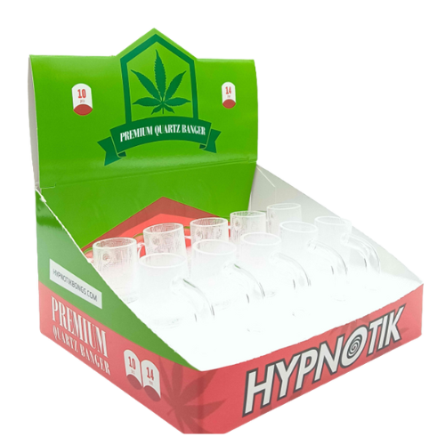 Bring a bold look to your glass lineup with this 10-piece display of Square Engraved 90° Quartz Bangers. The engraved square pattern adds eye-catching style, while the 90° angled joint ensures easy compatibility with most rigs. Built from durable quartz, these bangers deliver reliable heat retention, smooth airflow, and consistent performance for every session.