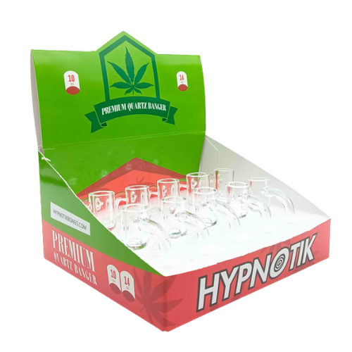 Upgrade your quartz lineup with this 10-piece display of Thick Round Bottom 90° Quartz Bangers. The thick quartz walls and rounded base provide superior heat retention and easier cleaning, while helping concentrate product for smooth, flavorful dabs. The 90° angled joint ensures wide compatibility with most rigs, making these a reliable choice for everyday use.