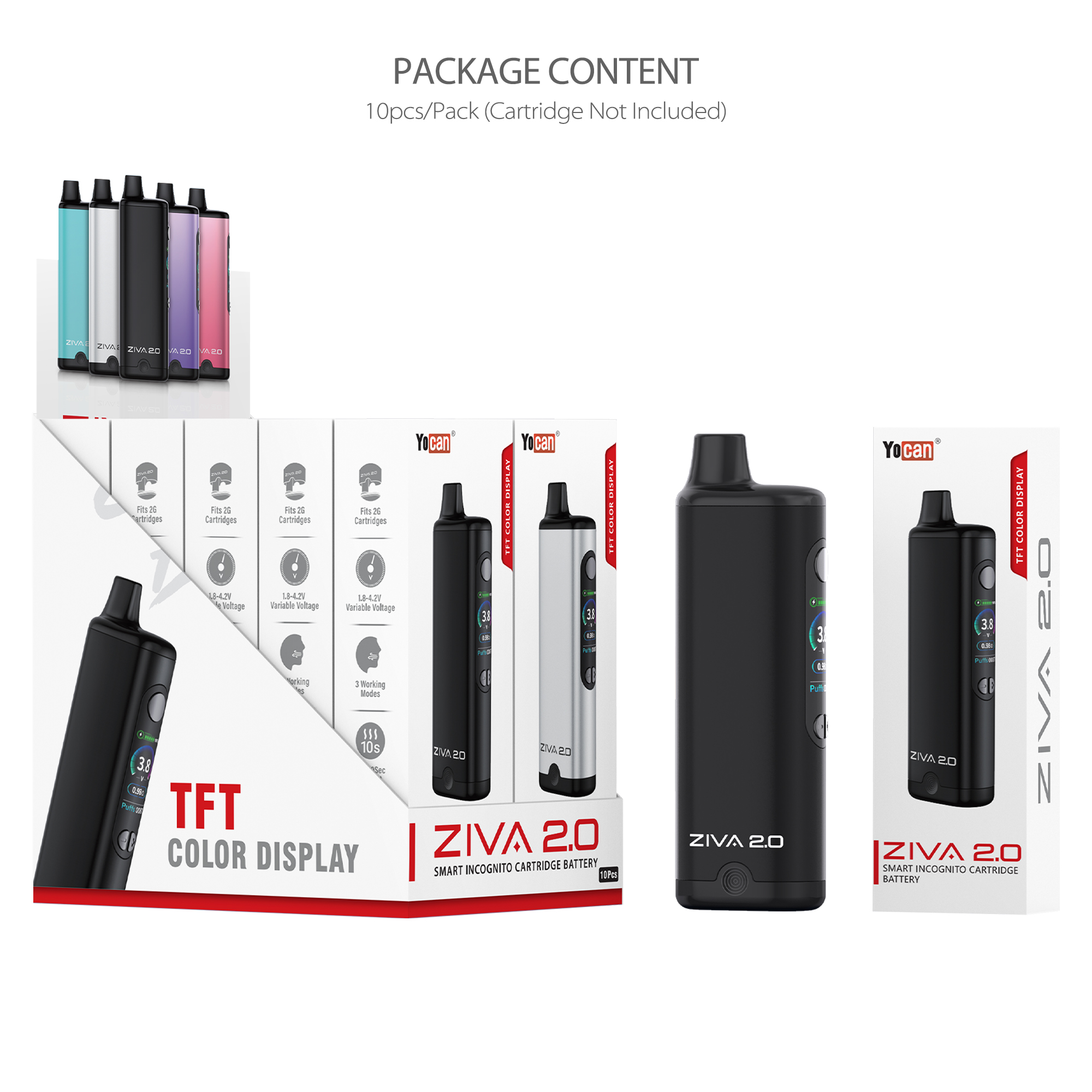 With universal 510-thread compatibility, the Yocan Ziva 2.0 works with most standard cartridges, making it a practical and versatile addition to any retail offering. Its combination of discreet design, ease of use, and adjustable performance makes it a strong option for customers looking for a more refined and low-profile device.