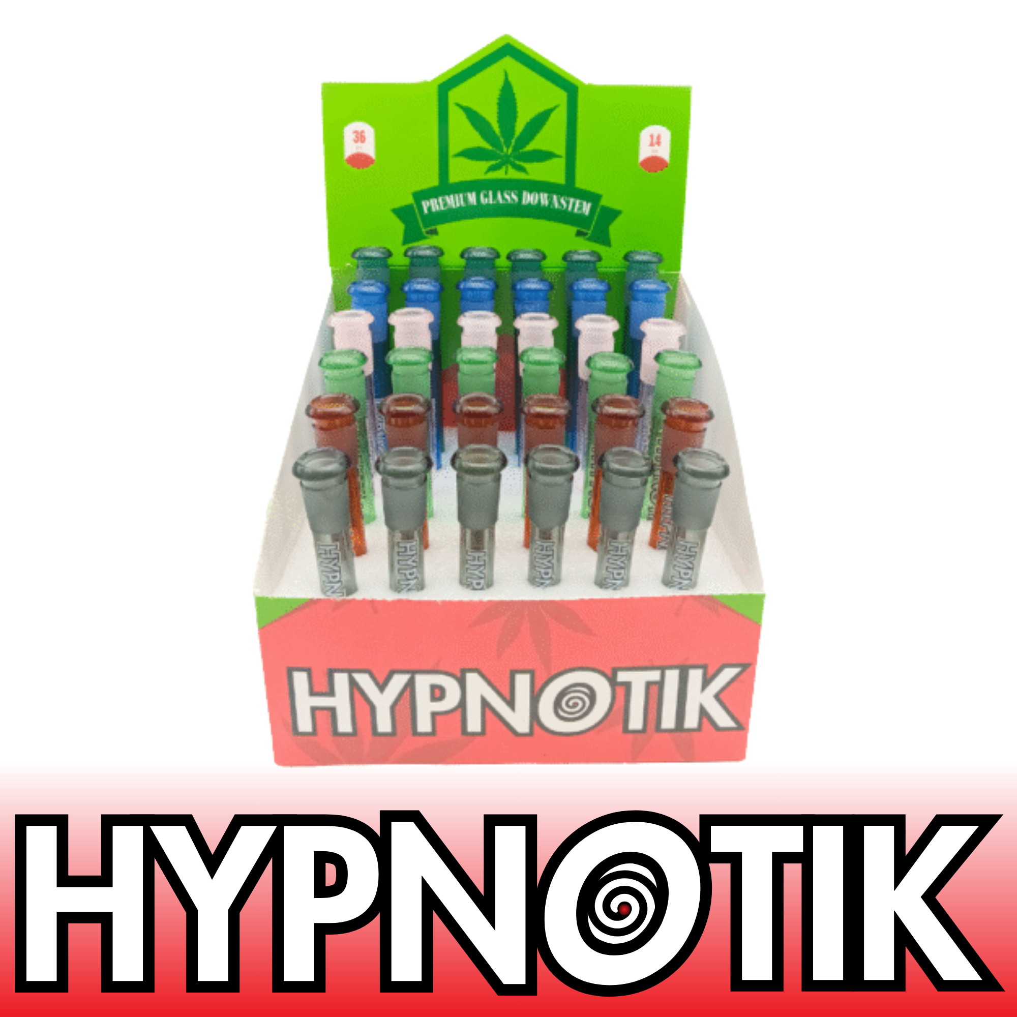 DISPLAY OF 36 HYPNOTIK CANDY COLORED DOWNSTEMS