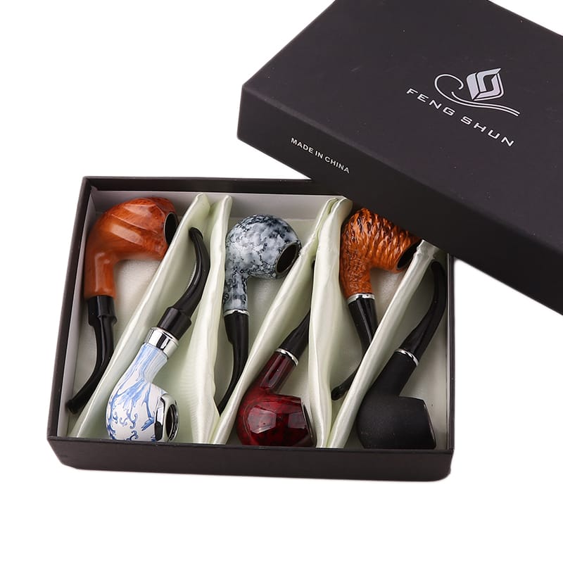 DISPLAY OF 6 RESIN WOOD PIPES. THE YOUNGER GENTLEMAN COLLECTION