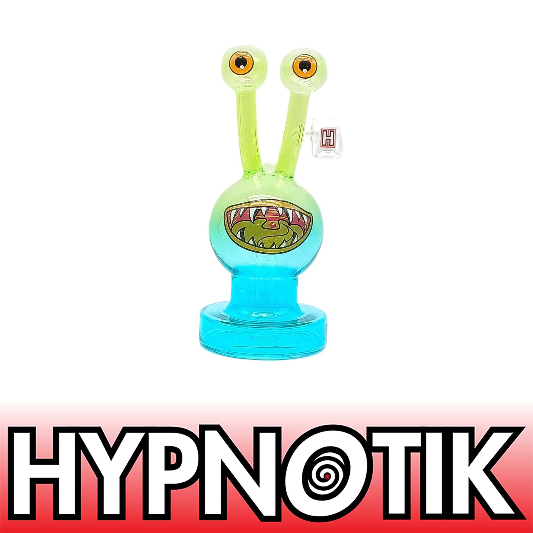 HYPNOTIK 7 INCH BUGGED OUT MONSTER ALIEN RIG, COMES WITH MATCHING BOWL AND QUARTZ BANGER, GREEN BLUE