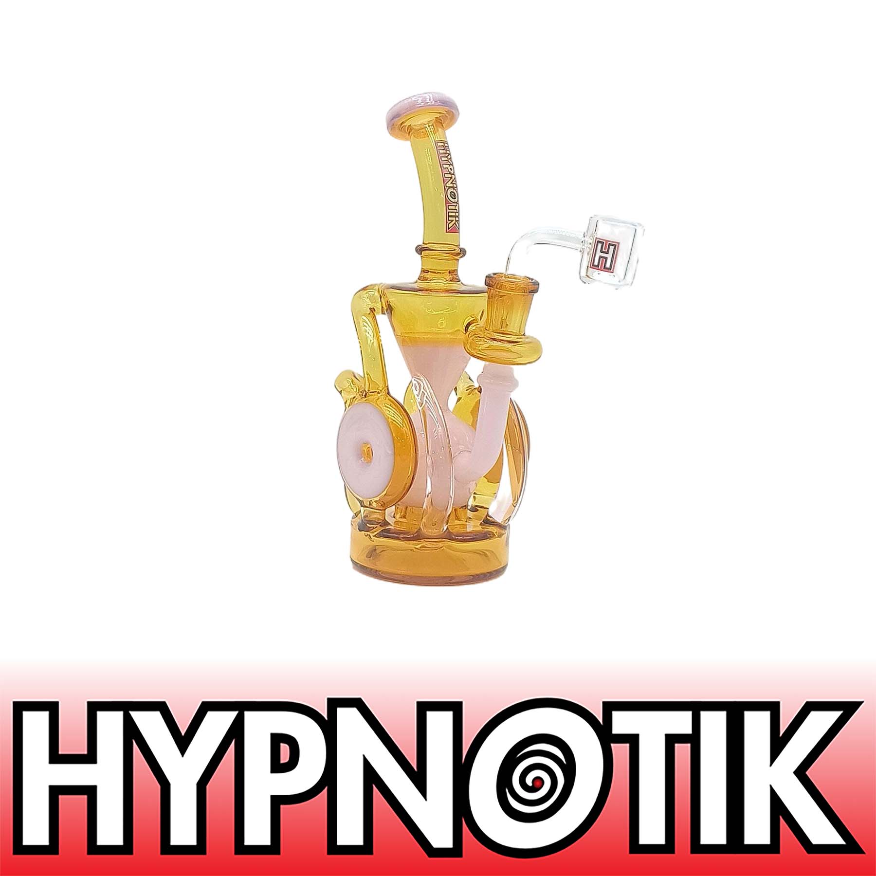 HYPNOTIK 8 INCH VORTEXX CORE RIG, COMES WITH MATCHING BOWL AND QUARTZ BANGER, BLAZING YELLOW HEAT
