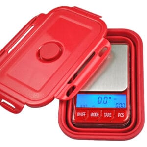 RM-BOWL 200 GRAM DOUBLE DIGIT POCKET SCALE WITH EXPANDING SILICONE TRAY, RED