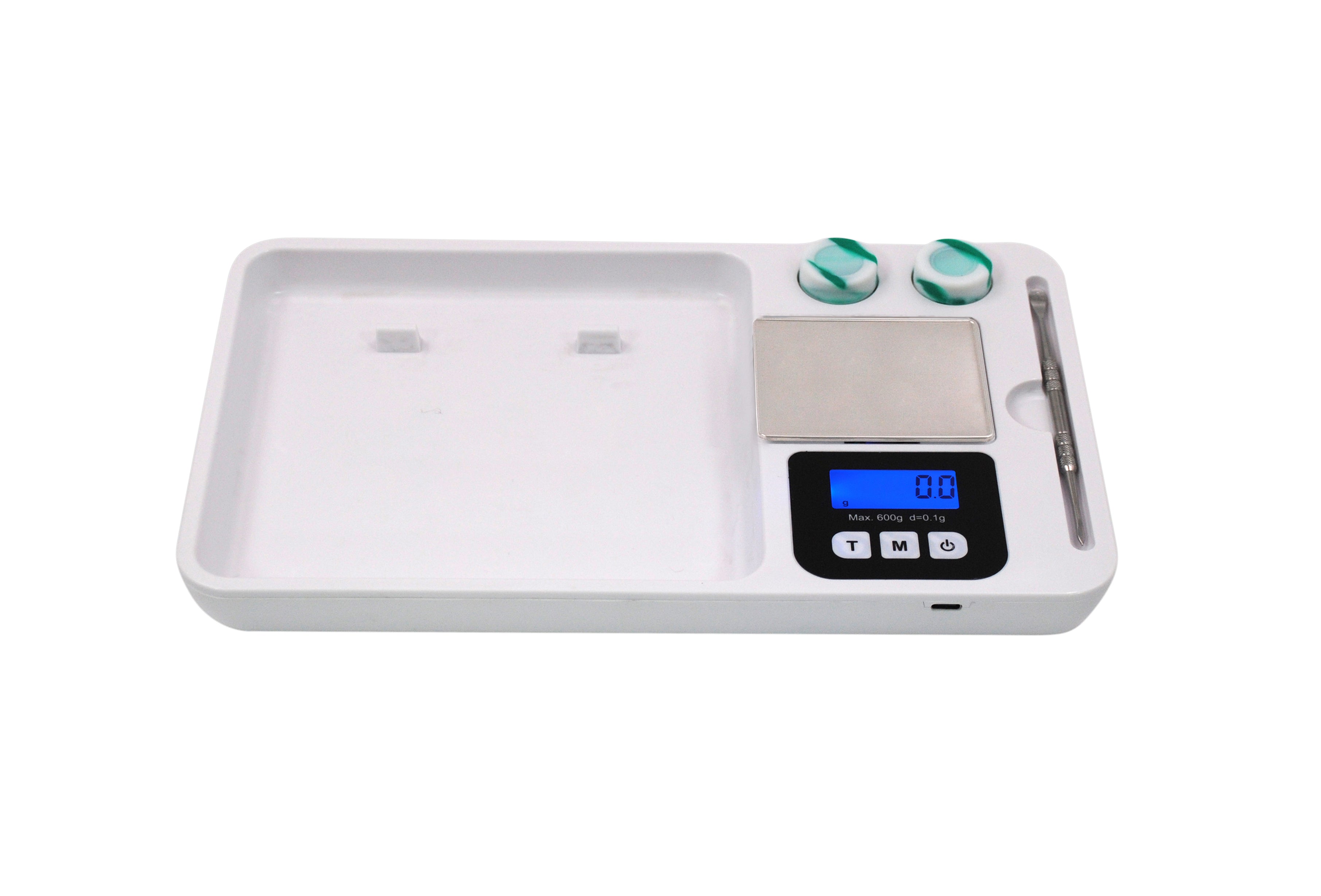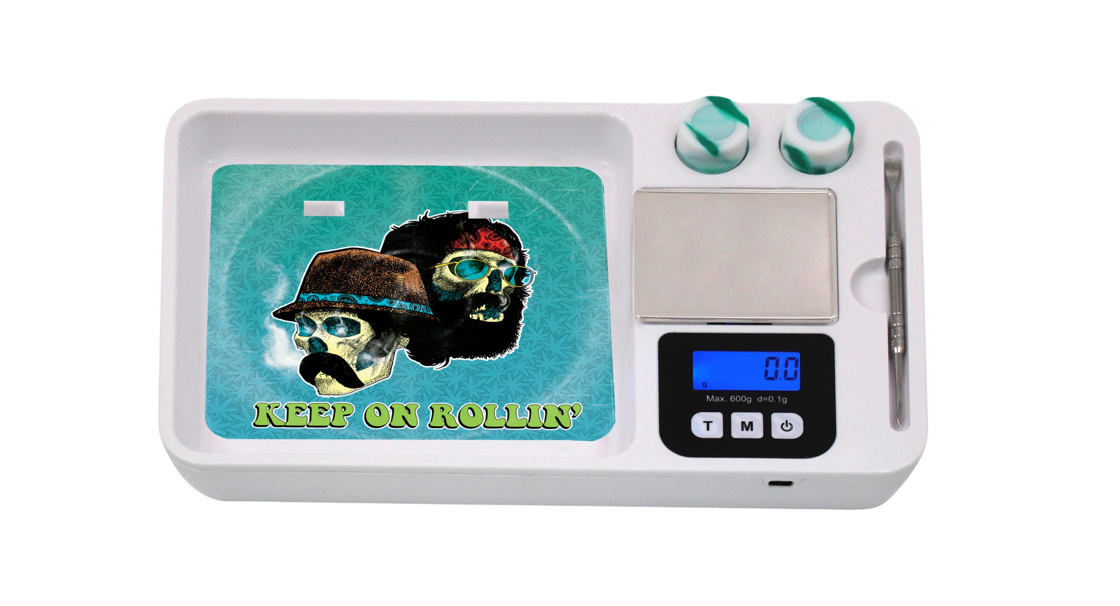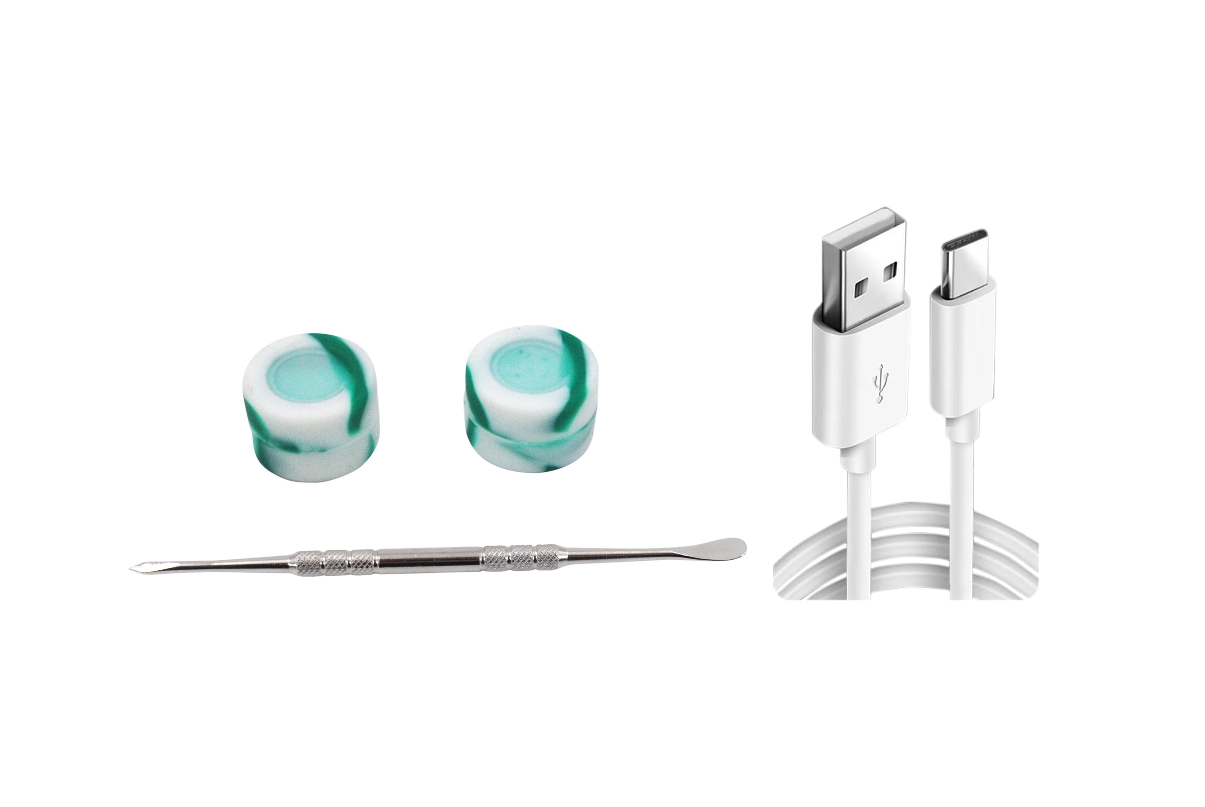 SPECIAL FEATURES: ROLLING TRAY WITH SILICONE CONTAINERS, DAB TOOL, AND CHARGING CORD