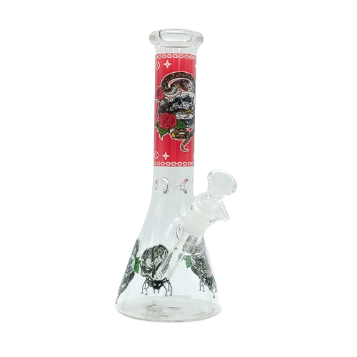 Featuring tattoo-inspired artwork of skulls, snakes, spiders, and roses across vibrant colored necks, each piece makes a statement that customers won’t forget. The wide beaker base ensures stability, while the ice pinch lets smokers cool down their rips for a clean, chill session.