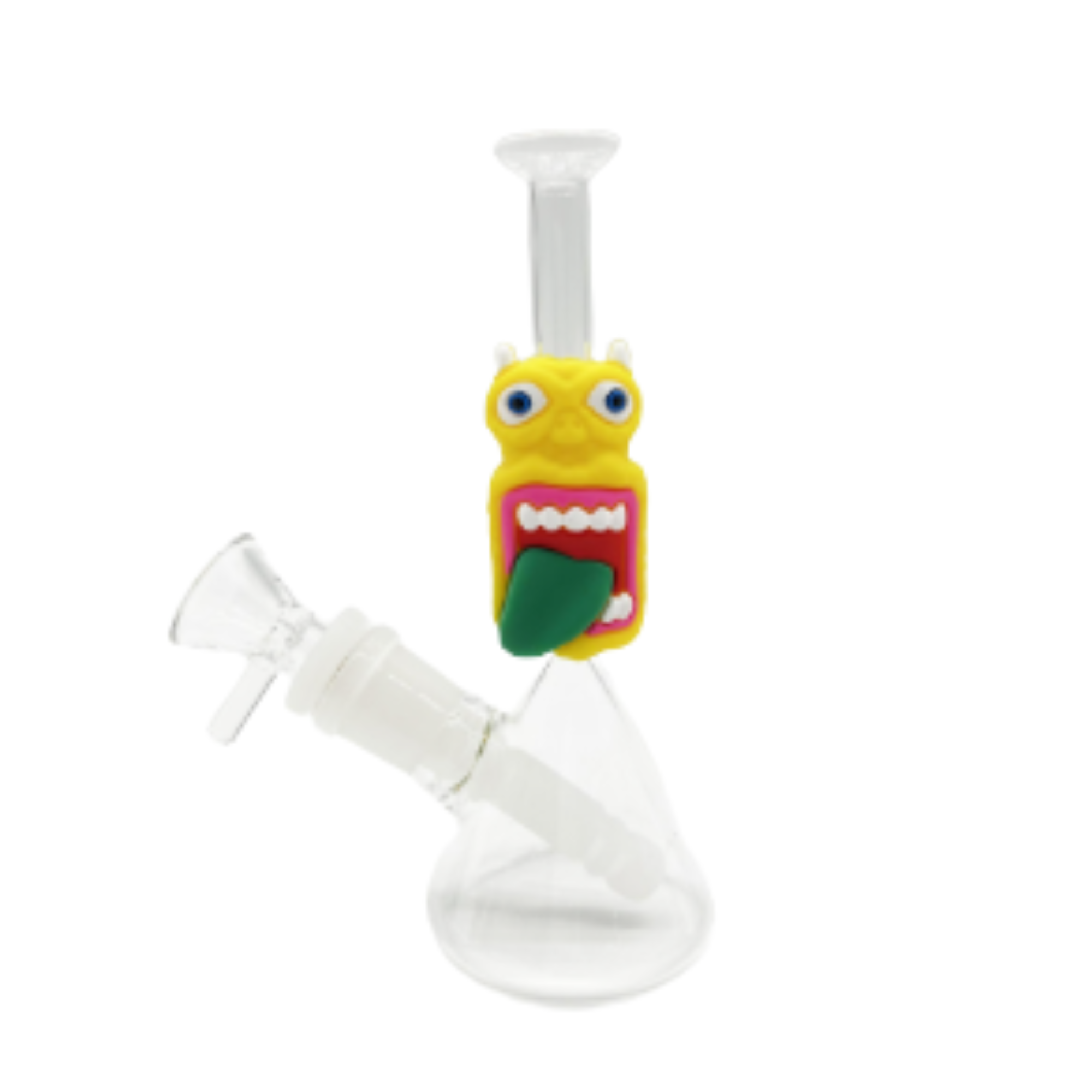 7 INCH MINI CARTOON GLASS BONG WITH SILICONE CENTER, GREEN TOUNGE MONSTER