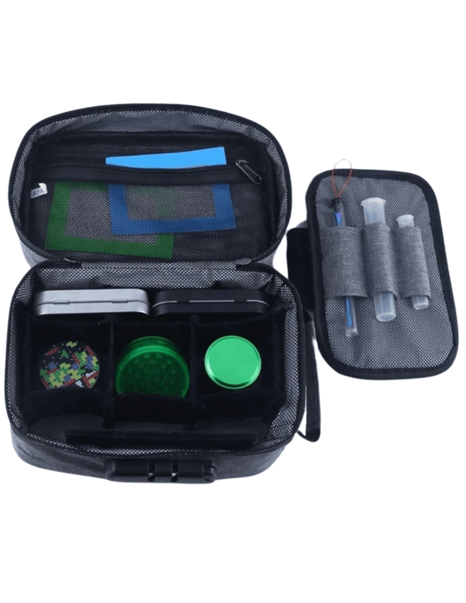 9 INCH PORTABLE BAG WITH MULTIPLE SECTION, HANDLE, AND LOCK