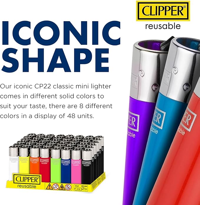Reliable, refillable, and ready to stand out — Clipper Lighters are a must-have for any smoke shop or convenience shelf. Known for their signature shape and eco-friendly design, Clipper lighters come in a wide variety of fun, collectible patterns that rotate regularly, keeping things fresh for customers.