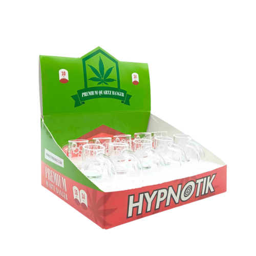 Bring style and function together with this 10-piece display of Gear Engraved 90° Quartz Bangers. Each banger features precision gear-style engraving for a unique look, while the 90° angle makes it compatible with most rigs. Made from durable quartz, these bangers heat evenly, retain temperature, and deliver smooth dabbing performance session after session.