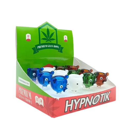 Add some playful Canadian charm to your lineup with this 12-piece display of Colored Beaver Glass Bowls. Each bowl is crafted from durable glass and shaped with a detailed beaver design — complete with big teeth and plenty of character. The assorted vibrant colors make them stand out on the shelf, while the universal fit ensures compatibility with most standard water pipes and rigs.