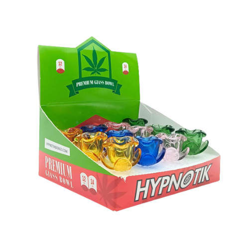 Brighten up your shelves with this 12-piece display of Colored Flower Petal Glass Bowls. Each bowl is crafted from durable glass and styled with a flower petal design that adds a touch of natural beauty to a smoking essential. The assorted vibrant colors make them stand out, while the universal fit ensures compatibility with most standard water pipes and rigs.