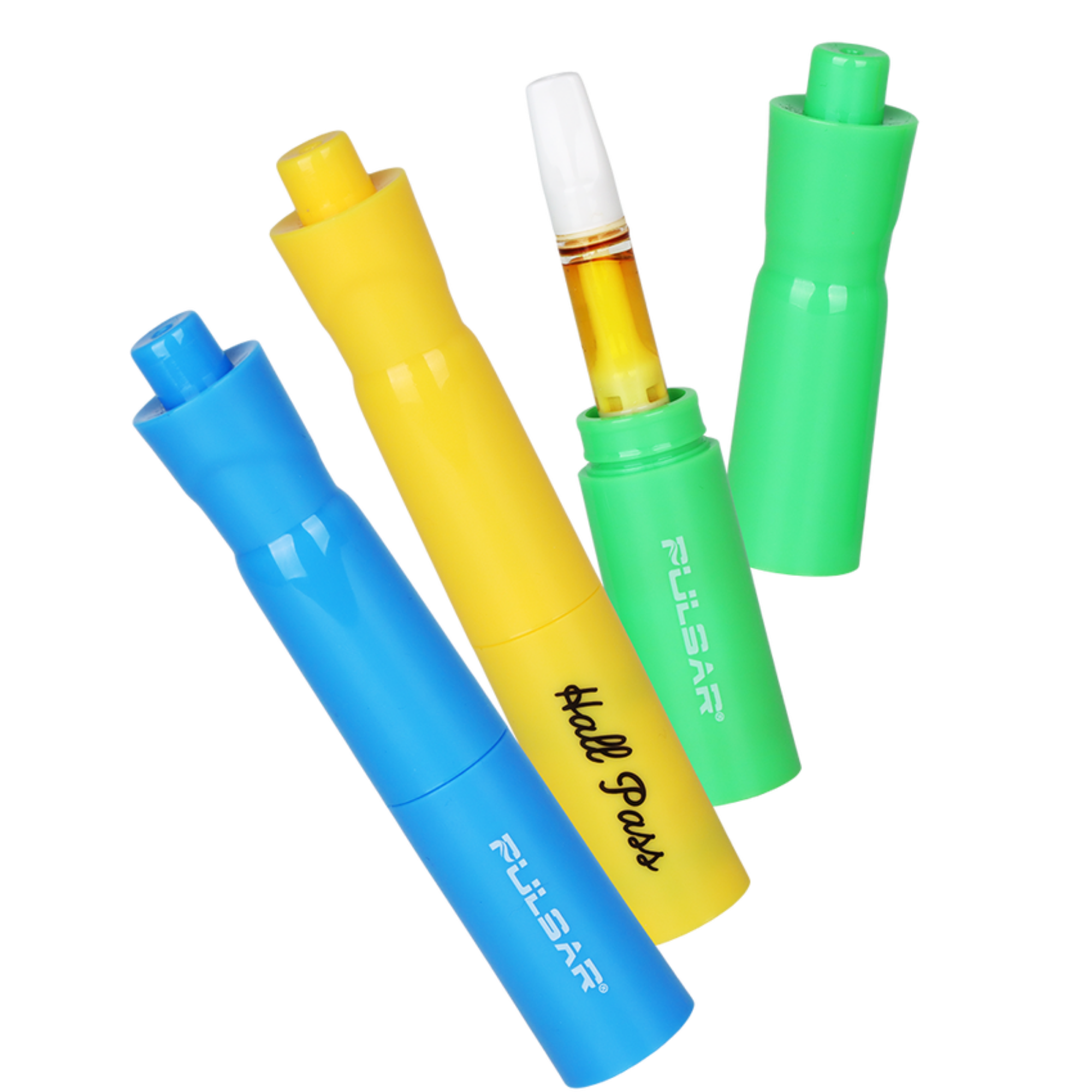 The Pulsar 510 Hall Pass Vape Battery is truly the highlight of stealth vaping tech! This discreet vape battery is crafted to look like a regular highlighter marker and has 5 preset voltage settings to choose from with and LED light in the button on the base to indicate current setting and battery life. The top half of the device conceals the vape cartridge (up to 2 grams) and lets users inhale through the tip of the cap, although the battery can be used without the top for larger cartridges.