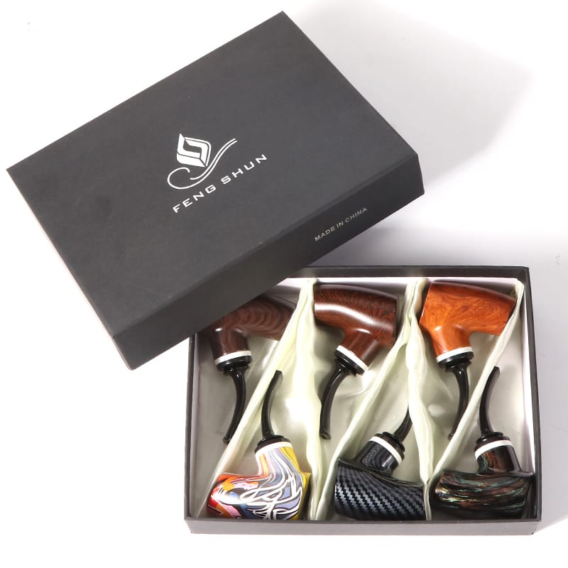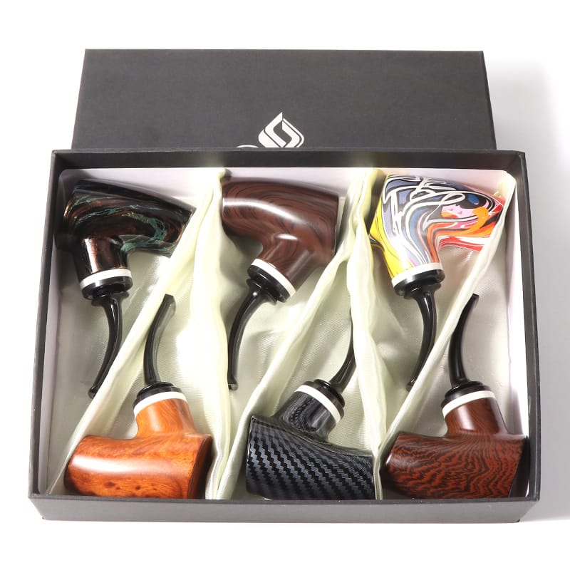 DISPLAY OF 6 RESIN WOOD PIPES. THE FLAT BASE COLLECTION