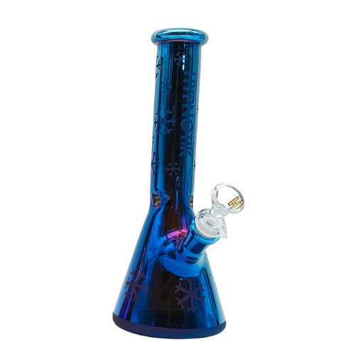Crafted from premium borosilicate glass, this bong features a color-shifting electroplated finish paired with intricate etched snowflake patterns, giving it a frosted winter look that stands out on any shelf.