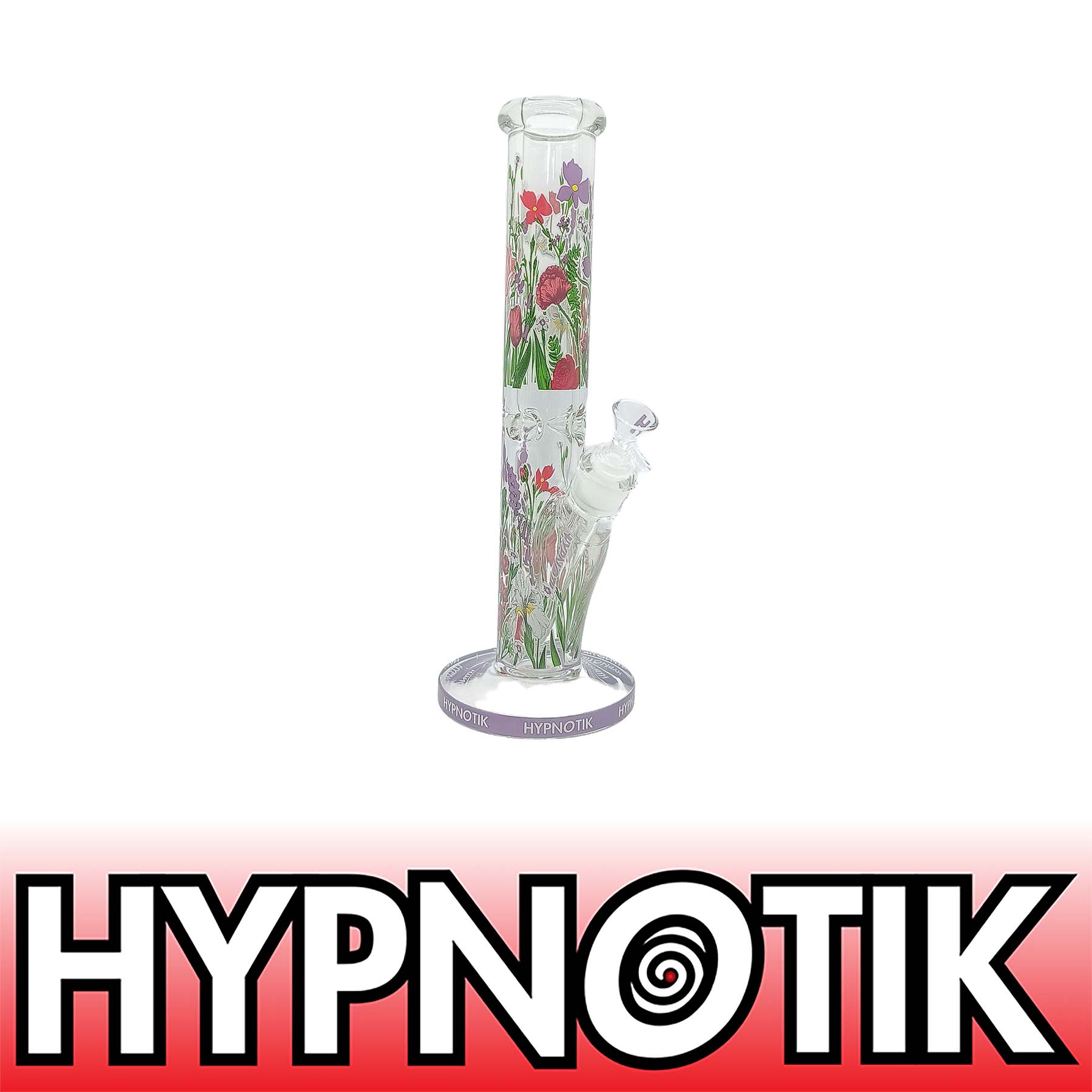 HYPNOTIK 14 INCH 9MM STRAIGHT TUBE BONG WITH MATCHING COLOR ON DOWNSTEM AND BOWL, PURPLE PETAL PATCH
