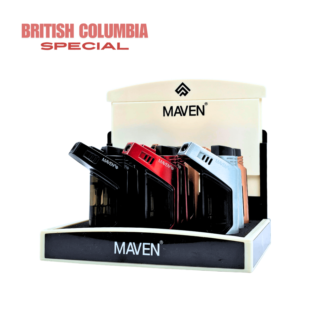 INTRODUCING THE MAVEN DUAL JET FLAME TORCH LIGHTER, DESIGNED TO BE YOUR ULTIMATE COMPANION DURING SMOKING SESSIONS. THIS DISPOSABLE LIGHTER COMBINES PRECISION ENGINEERING AND INNOVATIVE DESIGN FOR UNMATCHED PERFORMANCE AND RELIABILITY. WHETHER YOU’RE LIGHTING HERBS OR ENJOYING A CIGAR, THE MAVEN DUO ENSURES A CONSISTENT AND POWERFUL FLAME EVERY TIME.