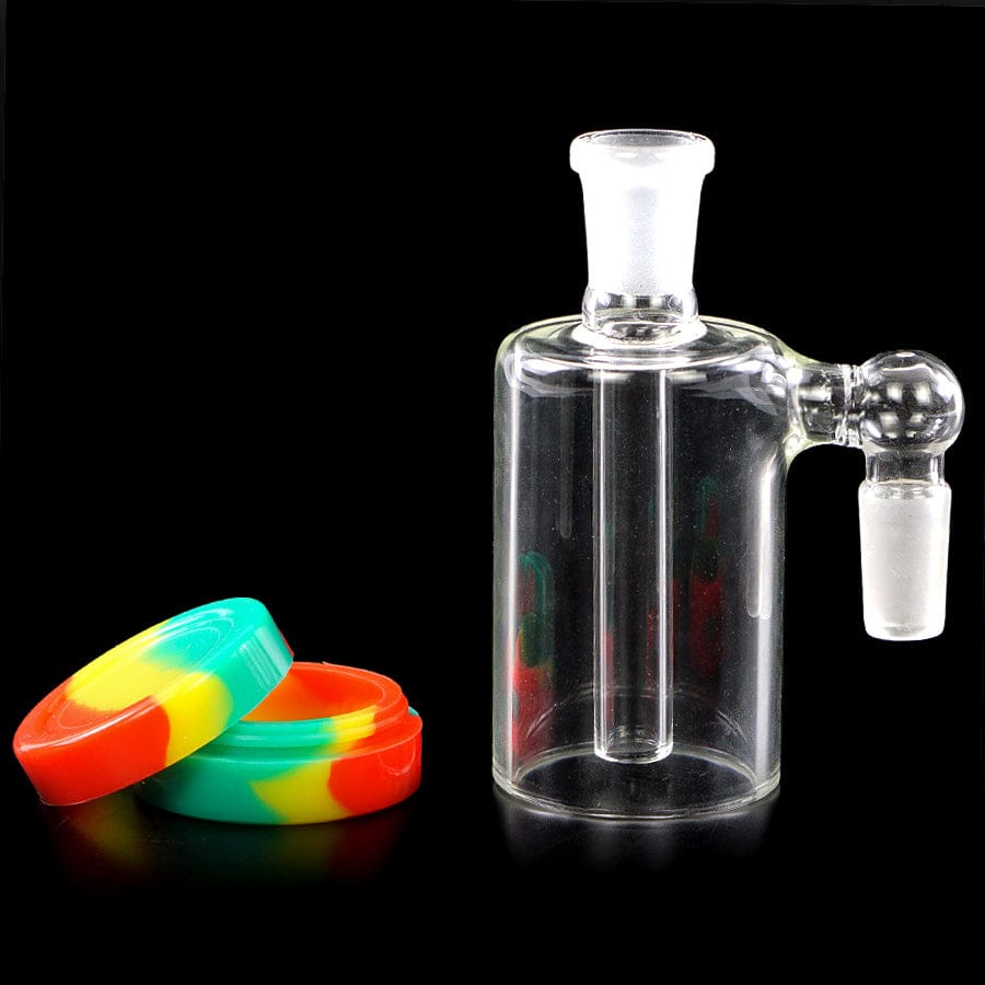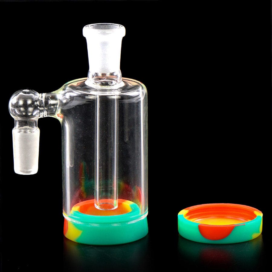 MEDIUM GLASS ASH CATCHER/RECLAIM WITH SILICONE BASE AND LID 45 MM DIAMTER MSRP $25