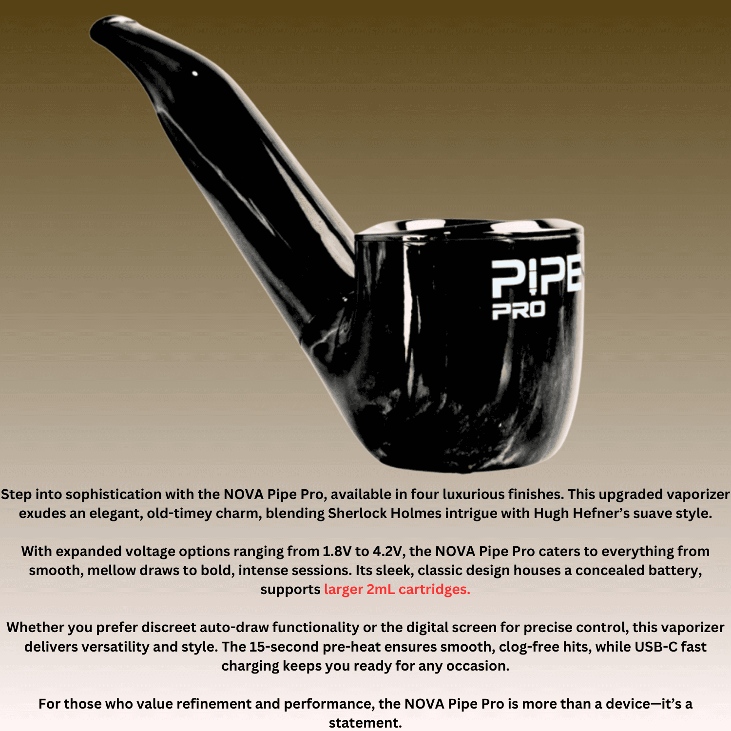 NOVA PIPE PRO 510 CONCEALED BATTERY, BLACK MARBLE