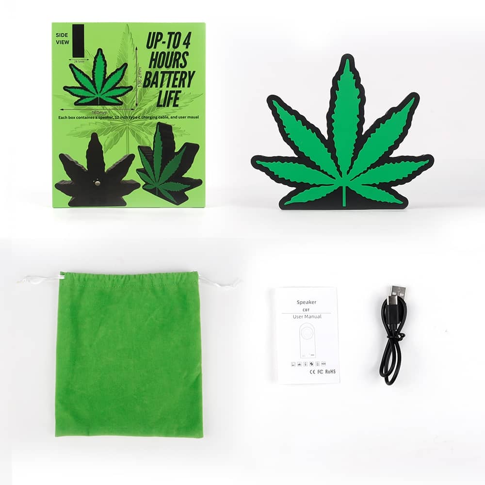 POT LEAF SHAPED BLUETOOTH SPEAKER WITH VELVET TRAVEL BAG