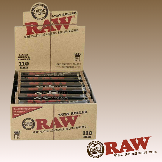 RAW 2-WAY HEMP PLASTIC ROLLER AVAILABLE IN 3 SIZES: 70MM, 79MM & 110MM.