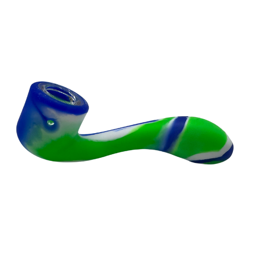 SILICONE SHERLOCK PIPE – BLUE GREEN WHITE