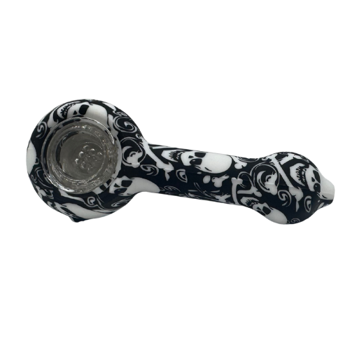 SILICONE PIPE WITH GLASS BOWL – SKULLS