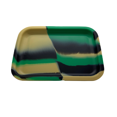 SILICONE SWIRL ROLLING TRAYS – BLACK GREEN TAN