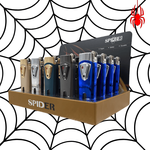 SPIDER DOUBLE FLAME LIGHTER STYLE TORCH WITH LOCK. COMES IN A DISPLAY OF 20. $280 PER DISPLAY ($14 PER PIECE) MSRP $29.99